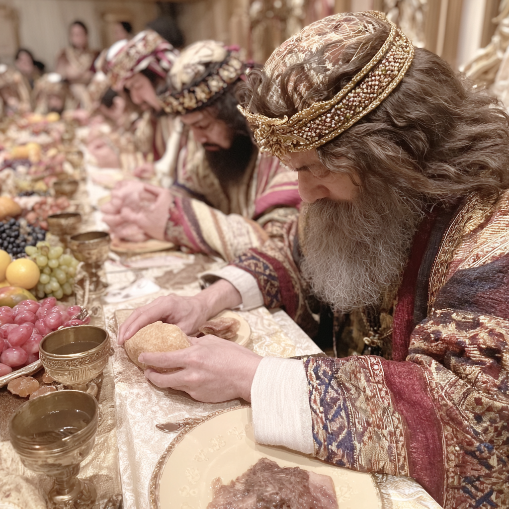 생각해보세요. 왕의 식탁에는 귀족들, 장군들, 중요한 사람들이 모였습니다. 그 자리는 화려하고 권위 있는 자리였지요. 그런데 그곳에 두 발을 저는 므비보셋이 함께 앉아 있었던 것입니다. 그는 걸을 때마다 어색한 발걸음으로 천천히 움직였을 것입니다. 그러나 다윗은 그 모습조차 귀하게 여기며, “너는 나의 아들이다”라고 선언하듯 식탁에 앉게 했습니다.