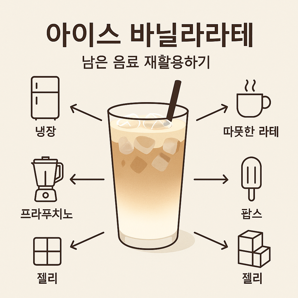텀블러 속에 얼음은 다 녹아 물처럼 된 아이스 바닐라라테—과연 내일까지 두었다가 마셔도 될까요? 오늘은 👉 안전하게 보관하는 법부터 맛있게 재탄생시키는 홈카페 레시피까지 한눈에 정리해 드립니다.