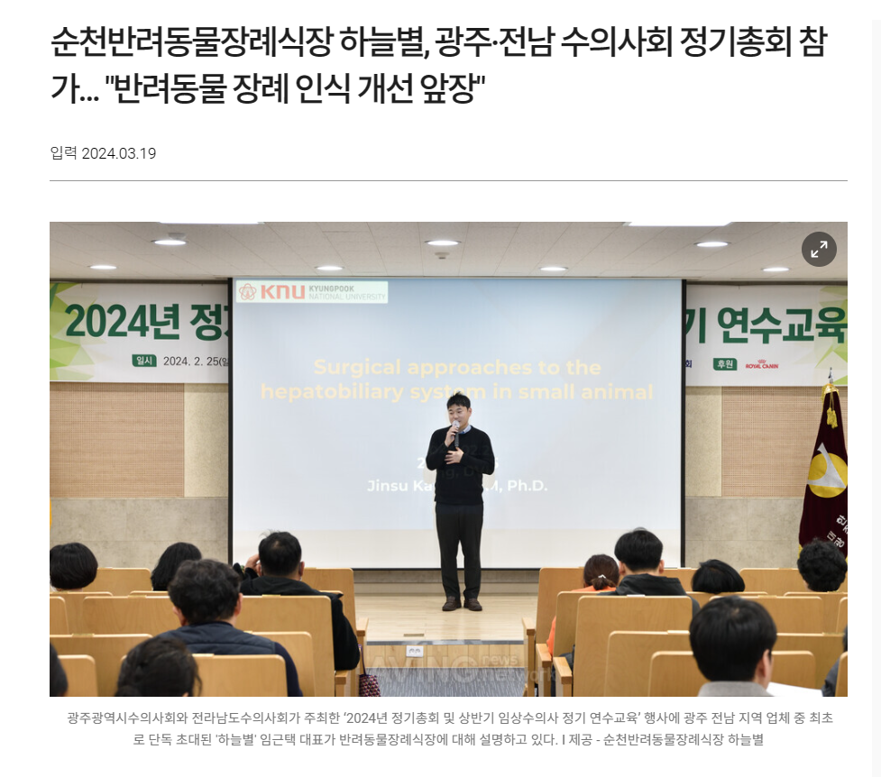 순천반려동물장례식장 하늘별, 광주·전남 수의사회 정기총회 참가... "반려동물 장례 인식 개선 앞장" < 라이프 < 기사본문 - 에이빙(AVING)